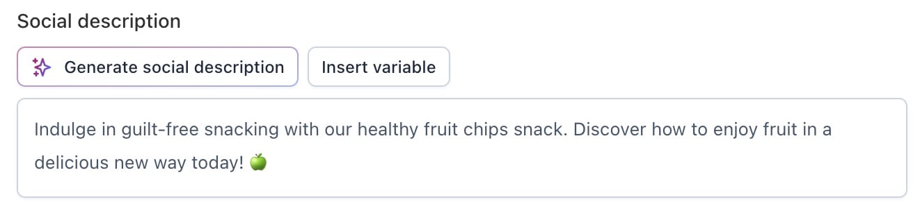 Want to make every single one of your products stand out in the search results? Looking to highlight your posts on social media? Yoast AI Generate is now available in Yoast SEO for Shopify: you can generate the perfect titles and meta descriptions for your products, posts and pages! By clicking the right button, you will receive carefully crafted suggestions for your SEO title and meta description, making your content stand out in search engine results and social media posts.