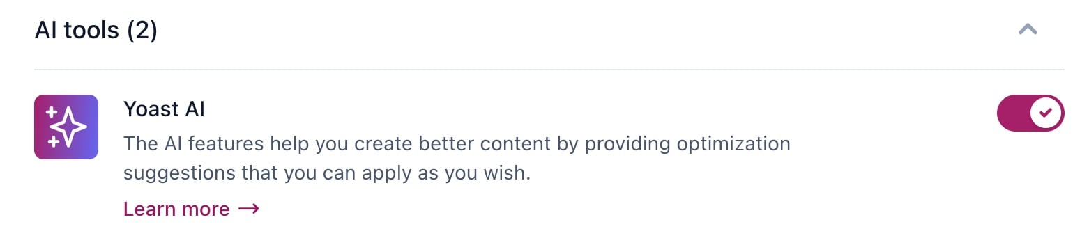 - Slide the Yoast AI toggle to On