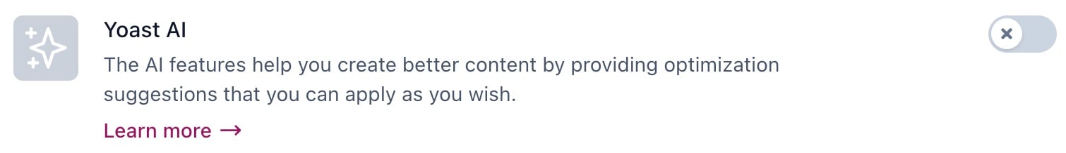 - Slide the Yoast AI toggle to Off
