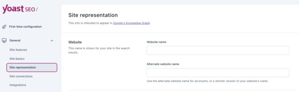 With these settings, you can give Yoast SEO the essential information to feed Google’s knowledge graph. For example, you can add your organization’s name, logo, and social profiles. You can also specify the site name and alternate site name of the website. As a result, you may get your site featured in a Google knowledge panel and increase your visibility in the search results.