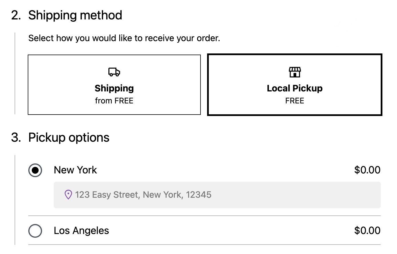 - Check that Local pickup is now an option under Shipping method