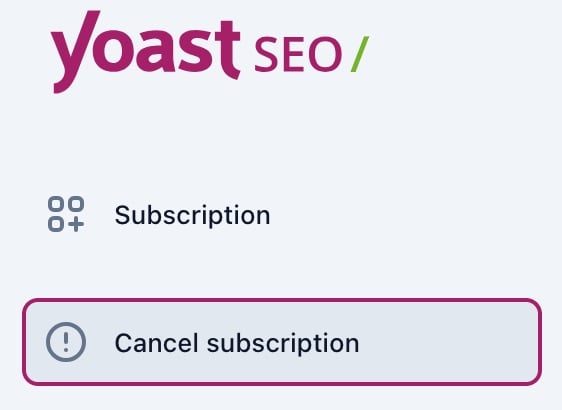 Your personal data will be removed, you will no longer be able to access Yoast SEO features and your subscription will be canceled.