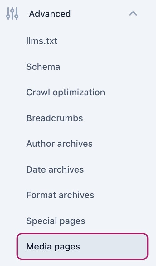 Attachments to posts are stored in the database as posts, this means they’re accessible under their own URLs. Disabling media pages will cause all attachment URLs to redirect to the media itself. Follow the steps below to disable media pages with Yoast SEO.