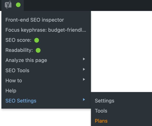 - Plans: this takes you to the available Yoast SEO subscriptions