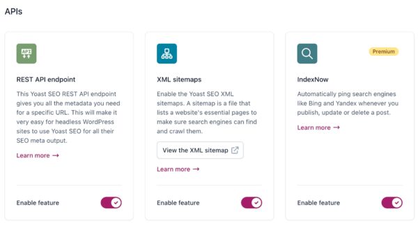 We recommend enabling this feature in Yoast SEO, which will automatically disable the default WordPress XML sitemap and ensure that our sitemap runs smoothly. If you choose to disable the XML sitemap feature in Yoast SEO, it will not disable the WordPress core XML sitemap. So, this will still be available as a backup. If you have the Yoast sitemap enabled, you can view your site’s XML sitemap by clicking the button View the XML sitemap.