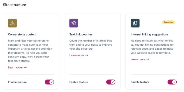 The next section in the Yoast SEO Site features settings is Site structure. So, let’s take a closer look at the features in the Site structure category.