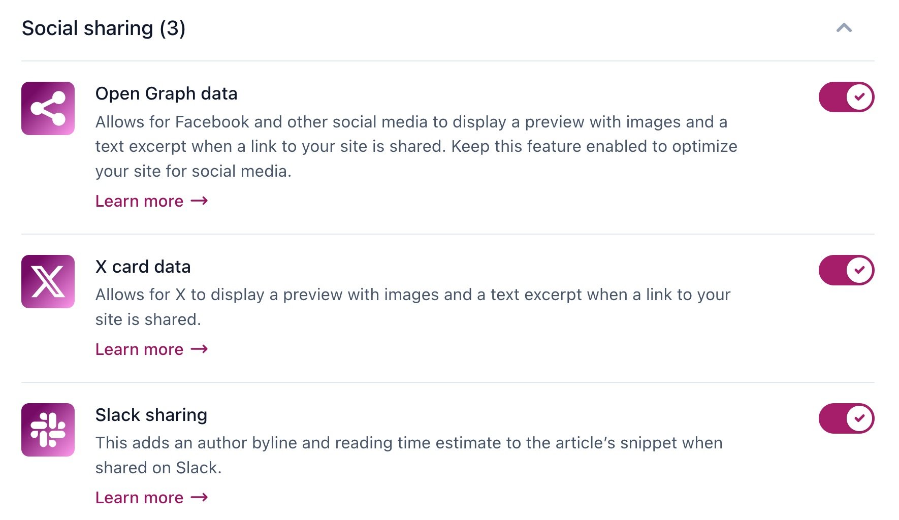 - Toggle the Open Graph data switch to On