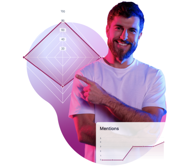 A score out of one hundred that blends mentions, ranking, citations, and sentiment. Shows the change since the last analysis.